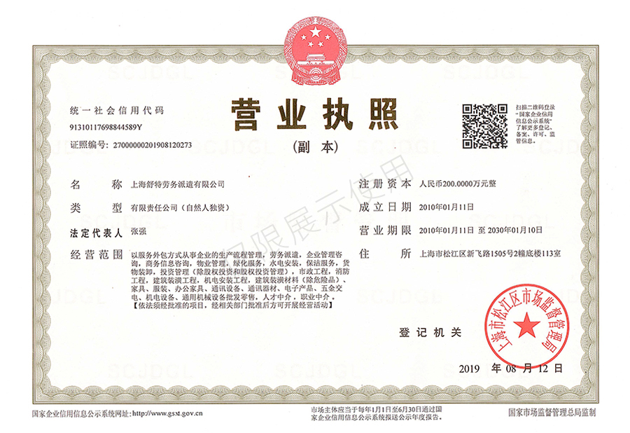 上海舒特勞務派遣有限公司
